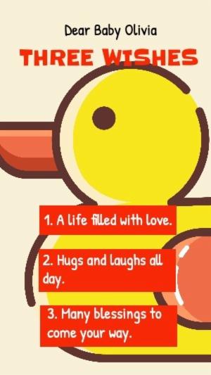 Dear Baby Olivia THREE WISHES 3. Many blessings to come your way. 1. A life filled with love. 2. Hugs and laughs all day.
